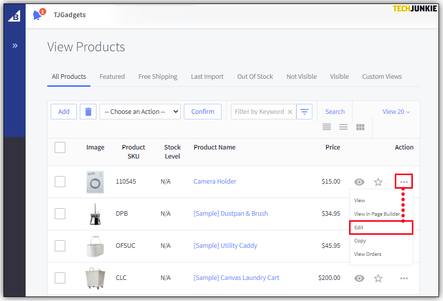 - 找到一个产品并点击三点图标进行编辑。