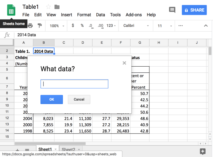 你会在下面的屏幕截图中注意到,在最底部,谷歌问我是否想链接到 census.gov,因为它注意到我从那里获取了这些数据。此功能非常有助于在创建文档时跟踪您的来源。
