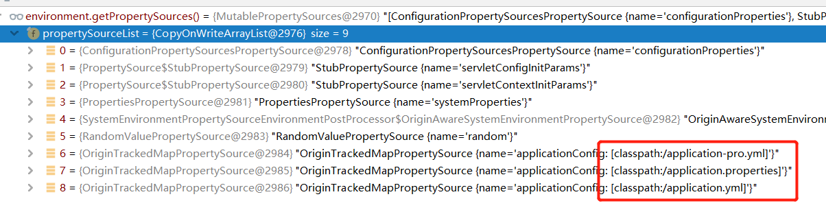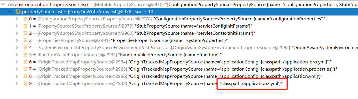 在向environment中添加propertySource前加一个断点,查看环境的变化: