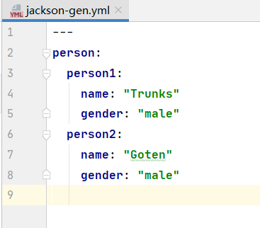 查看生成的yml档案,可以看到jackson对字符串型别严格的添加了引号,还在档案的开头添加了yml的链接符,至于其他jackson读写yml的复杂功能,大家可以在作业中自己去探索使用,