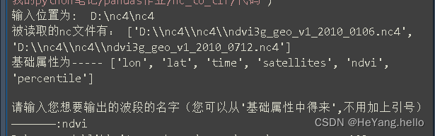 band_name = input("请输入您想要输出的波段的名字(您可以从'基础属性中得来',不用加上引号)———————:") #这里是从用户那传入一个波段的字符串,因为nc4的资料比nc要复杂,所以要让用户确定波段的名字