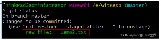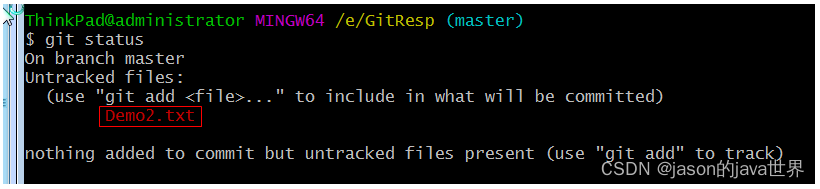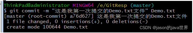 git commit -m "这是我第一次提交的Demo.txt" Demo.txt