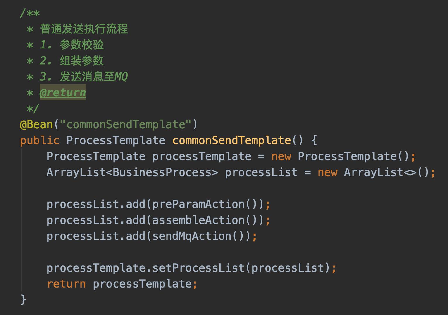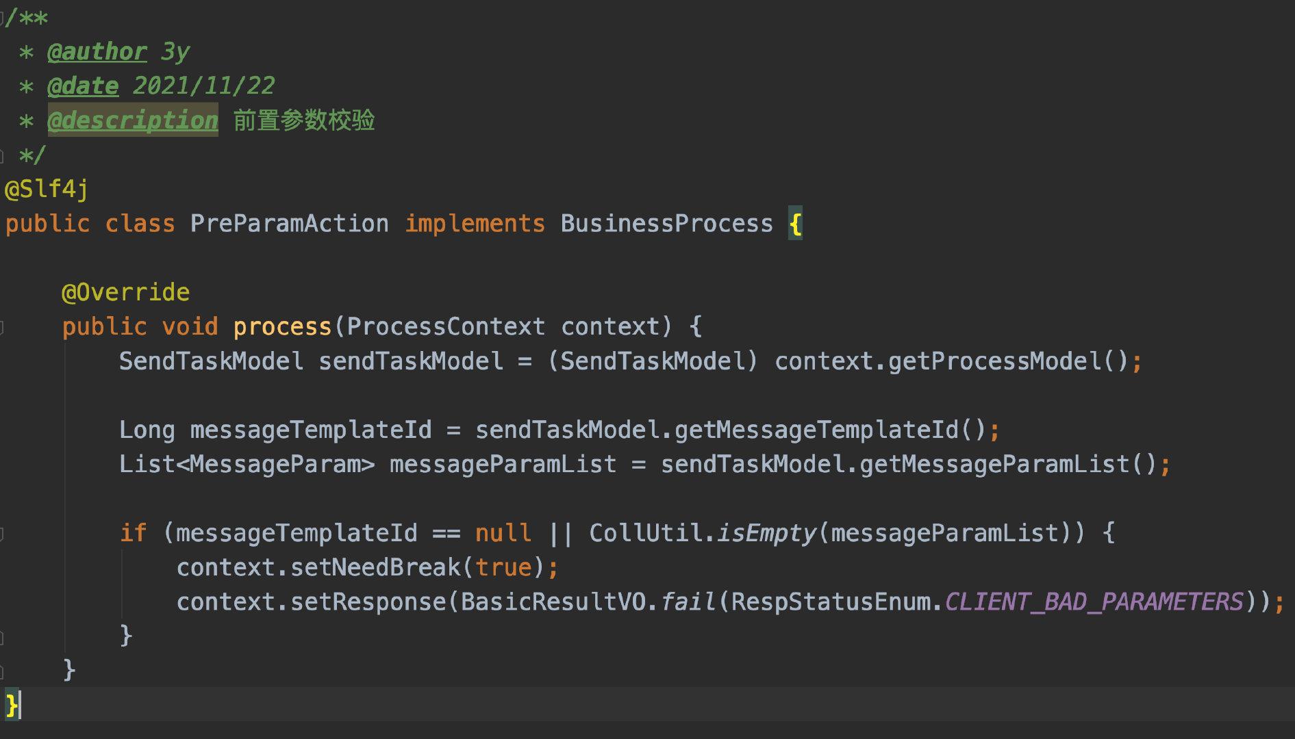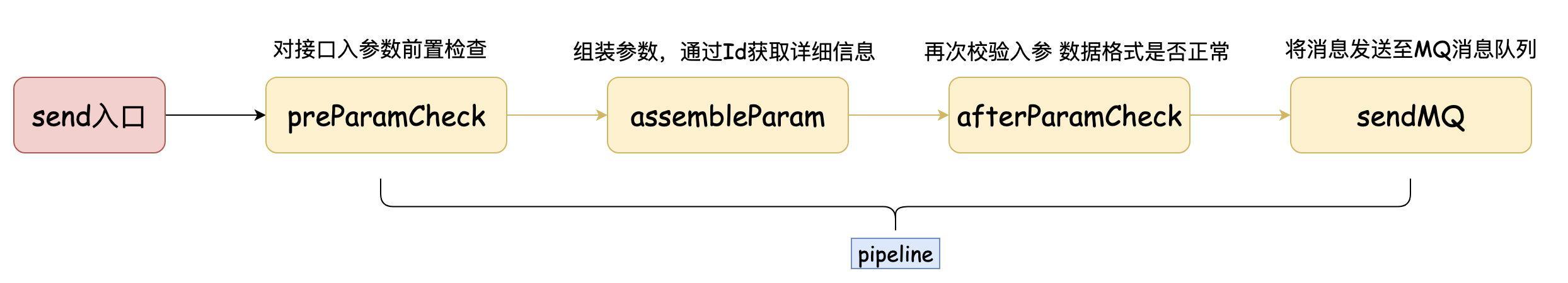 回到代码实作吧,这次我实作的业务是:自变量前置检查->自变量拼装->发送讯息