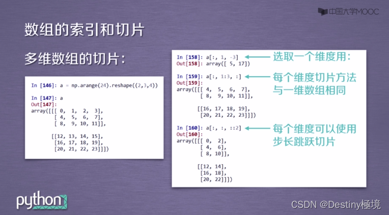 此处直接参考嵩天老师的PPT,阵列索引切片这个部分还是比较easy的,