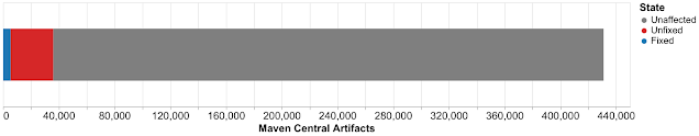 就生态系统影响而言,8% 是相当巨大的数字,因为对 Maven Central 生态的平均影响数值为 2%,中位数则低于 0.1%,